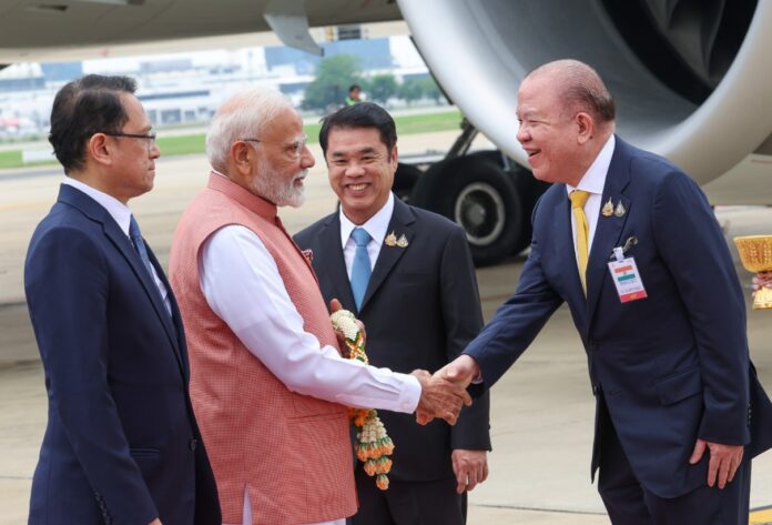 ಬ್ಯಾಂಕಾಕ್: ಪ್ರಧಾನಿ ನರೇಂದ್ರ ಮೋದಿ ಅವರು ಎರಡು ದಿನಗಳ ಭೇಟಿಗಾಗಿ ಇಂದು ಥೈಲ್ಯಾಂಡ್ ಬಂದಿಳಿದಿದ್ದಾರೆ.