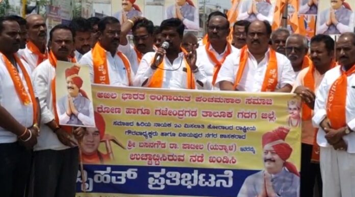 ವಿಜಯಪುರ: ಶಾಸಕ ಬಸನಗೌಡ ಪಾಟೀಲ್ ಯತ್ನಾಳ್ ಅವರನ್ನು ಬಿಜೆಪಿಯಿಂದ ಉಚ್ಚಾಟನೆ ಮಾಡಿದ್ದನ್ನು ಖಂಡಿಸಿ ಅಖಿಲ ಭಾರತ ಲಿಂಗಾಯತ ಪಂಚಮಸಾಲಿ ಸಮಾಜ ರೋಣ ಹಾಗೂ ಗಜೇಂದ್ರಗಡ ತಾಲೂಕಾ ಘಟಕದಿಂದ ಗದಗ ಜಿಲ್ಲೆಯ ಗಜೇಂದ್ರಗಡ ಪಟ್ಟಣದಲ್ಲಿ ಪ್ರತಿಭಟನೆಯನ್ನ ನಡೆಸಲಾಯಿತು.