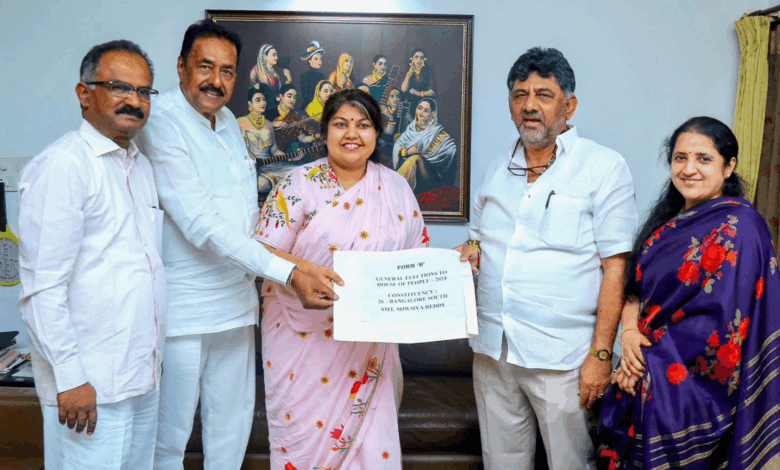 Read More »ಬೆಂಗಳೂರು ದಕ್ಷಿಣ ಲೋಕಸಭಾ ಕ್ಷೇತ್ರದ ಕಾಂಗ್ರೆಸ್ ಅಭ್ಯರ್ಥಿ ಸೌಮ್ಯ ರೆಡ್ಡಿಯವರಿಗೆ ಕೆಪಿಸಿಸಿ ಅಧ್ಯಕ್ಷ ಡಿ.ಕೆ.ಶಿವಕುಮಾರ್ ಇಂದು ಸದಾಶಿವನಗರದಲ್ಲಿರುವ ತಮ್ಮ ನಿವಾಸದಲ್ಲಿ ಬಿಫಾರಂ ವಿತರಣೆ ಮಾಡಿದ್ರು. ಇದೇ ವೇಳೆ…