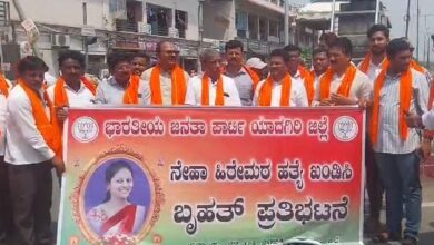 ನೇಹಾ ಹತ್ಯೆ ಖಂಡಿಸಿ ಬಿಜೆಪಿ ಮುಖಂಡರಿಂದ ಬೃಹತ್ ಪ್ರತಿಭಟನೆ.