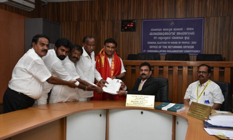 Read More »ಚಿಕ್ಕಬಳ್ಳಾಪುರ : ಚಿಕ್ಕಬಳ್ಳಾಪುರ ಲೋಕಸಭಾ ಕ್ಷೆತ್ರಕ್ಕೆ ಬಿಜೆಪಿ ಅಭ್ಯರ್ಥಿ ಡಾ ಕೆ ಸುಧಾಕರ್ ಜಿಲ್ಲಾ ಚುನಾವಣಾ ಅಧಿಕಾರಿ ಪಿ ಏನ್ ರವೀಂದ್ರಗೆ ನಾಮಪತ್ರ ಸಲ್ಲಿಸಿದ್ದಾರೆ. ಈ ಸಮಯದಲ್ಲಿ…