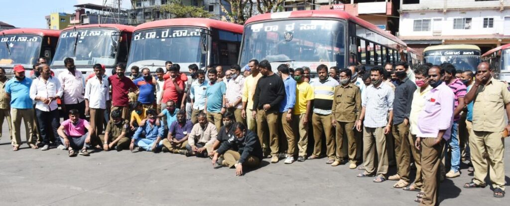 ವಿವಿಧ ಬೇಡಿಕೆಗಳ ಈಡೇರಿಕೆಗಾಗಿ ಆಗ್ರಹಿಸಿ ಬೆಂಗಳೂರಿನ ಫ್ರೀಡಂ ಪಾರ್ಕ್‌ನಲ್ಲಿ ಬೃಹತ್ ಪ್ರತಿಭಟನೆ ನಡೆಸುತ್ತಿದ್ದ ಕರ್ನಾಟಕ ರಾಜ್ಯ ಸಾರಿಗೆ ನೌಕರರು, ಸರ್ಕಾರದೊಂದಿಗಿನ ಮಾತುಕತೆಯ ನಂತರ ತಮ್ಮ ಮುಷ್ಕರವನ್ನು ತಾತ್ಕಾಲಿಕವಾಗಿ ಹಿಂಪಡೆದಿದ್ದಾರೆ.
