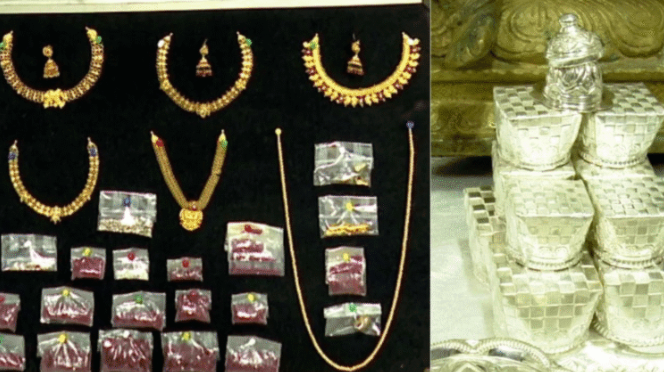ಬೆಂಗಳೂರು: ಪೂಜೆ ಮಾಡಿದ್ದ ದೇವಸ್ಥಾನದಲ್ಲೇ ಕಳ್ಳತನ ಮಾಡಿರುವ ಘಟನೆ ಬೆಂಗಳೂರಿನಲ್ಲಿ ನಡೆದಿದ್ದು, ಇಬ್ಬರು ಆರೋಪಿಗಳನ್ನು ಪೊಲೀಸರು ಅರೆಸ್ಟ್​ ಮಾಡಿದ್ದಾರೆ. ಅರ್ಚಕ ಪ್ರವೀಣ್ ಭಟ್ ಮತ್ತು ಸಂತೋಷ್ ಇಬ್ಬರು ಬಂಧಿತರು. ಬೆಳಗಿನ ಜಾವ ದೇವಾಲಯಗಳಲ್ಲಿ ಪೂಜೆ ಮಾಡಿ, ರಾತ್ರಿಯಾದರೆ ಅದೇ ದೇವಾಲಯದ ಚಿನ್ನಾಭರಣ ಮತ್ತು ಬೆಲೆಬಾಳುವ ವಸ್ತುಗಳನ್ನು ಕದ್ದು ಮಾರಾಟ ಮಾಡುತ್ತಿದ್ದ.