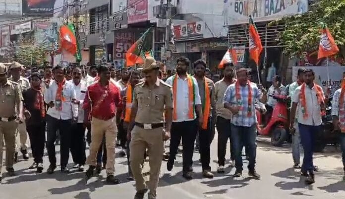ನಗರದ ಶಾನಭಾಗ್ ವೃತದಿಂದ ಪ್ರಾರಂಭವಾದ ಪ್ರತಿಭಟನೆಯು, ಅಂಬೇಡ್ಕರ್ ವೃತ್ತದ ಮೂಲಕ ಸಾಗಿ ಫರ್-ವೇಜ್ ಪ್ಲಾಜ್ ಮುತ್ತಿಗೆ ಹಾಕಲು ಪ್ರಯತ್ನಿಸಿದರು.ಈ ಸಂದರ್ಭದಲ್ಲಿ ಪೋಲೀಸರು ಪ್ರತಿಭಟನಾಕಾರರನ್ನು ತಡೆಯುವಲ್ಲಿ ಯಶಸ್ವಿಯಾದರು.ಪಾಕಿಸ್ತಾನ್ ಜಿಂದಾಬಾದ್ ಎಂಬ ಹೇಳಿಕೆಯ ಕೂಗುವ ಮೂಲಕ ಕಾಂಗ್ರೇಸ್ ಪಕ್ಷ ತನ್ನ ನಿಜಬಣ್ಣ ಏನು ಎನ್ನುವುದನ್ನು ತೋರಿಸಿದೆ ಬಿಜೆಪಿ ಮುಖಂಡರು ಆಕ್ರೋಶ ಹೊರ ಹಾಕಿದರು.
